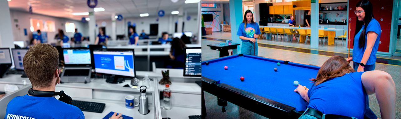 Somos uma equipe de pessoas incríveis que trabalham por propósito e com paixão. O resultado disso é um ambiente de pessoas engajadas com a missão da empresa, motivadas e felizes em realizar as suas atividades.
